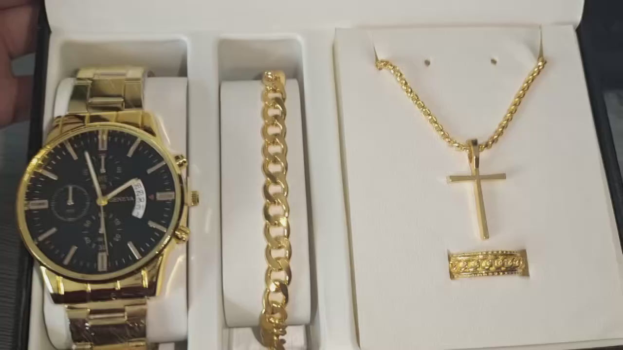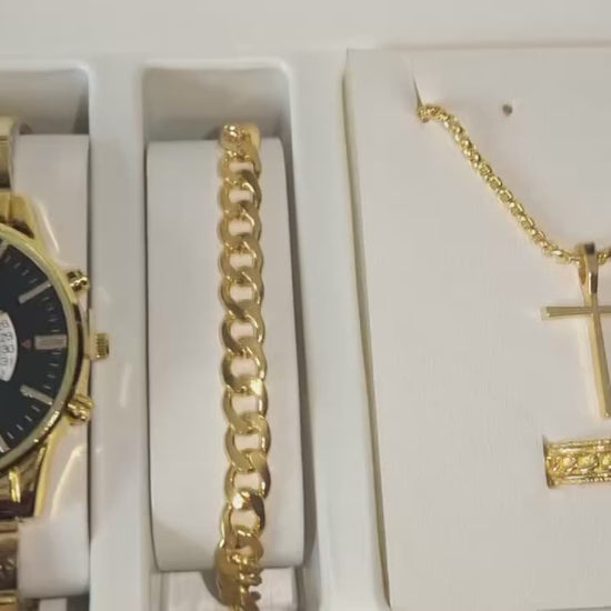 Set de Accesorios Elegantes para Hombre – Reloj, Pulsera, Anillo y Collar Cruz